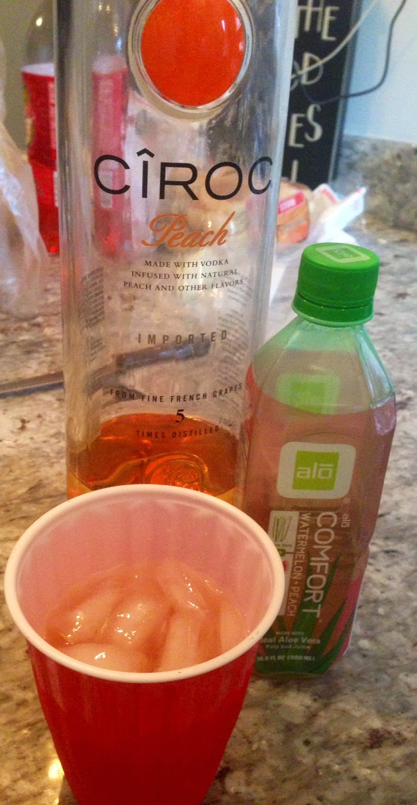 I don't usually drink juice because it seems like a waste of calories to me but this stuff was so refreshing, probably because the highs in DC have been 98 degrees all week and I have been slowly melting. We decided to mix it with some Peach Ciroc because that is my all time favorite liquor and we always have a Costco-sized bottle on hand. Ohhememmmgeee this was delicious. Everyone liked the cocktail, even Harrison who, as I've said before, thinks healthy food is a gimmick and refuses to try. My favorite combination was the Watermelon Peach flavor with the Peach Ciroc.