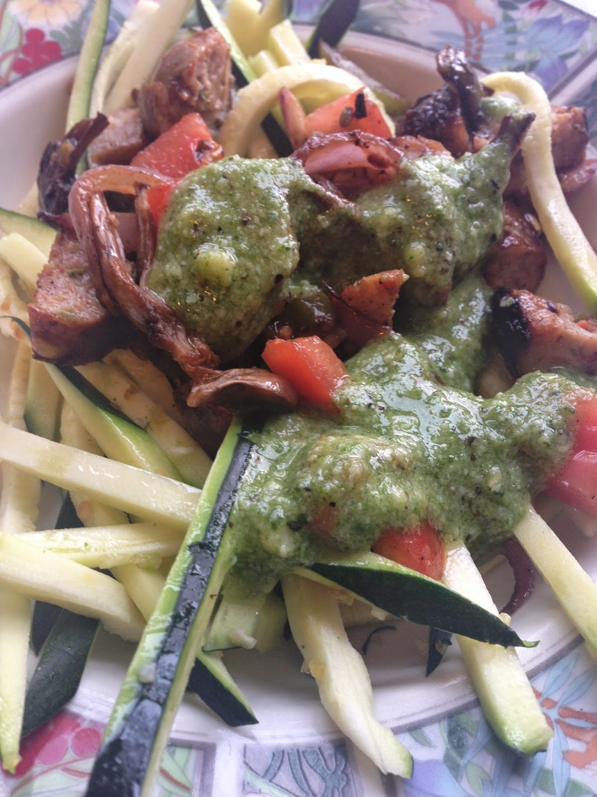 So here I am trying to pull it together. This is the squasta with homemade pesto: